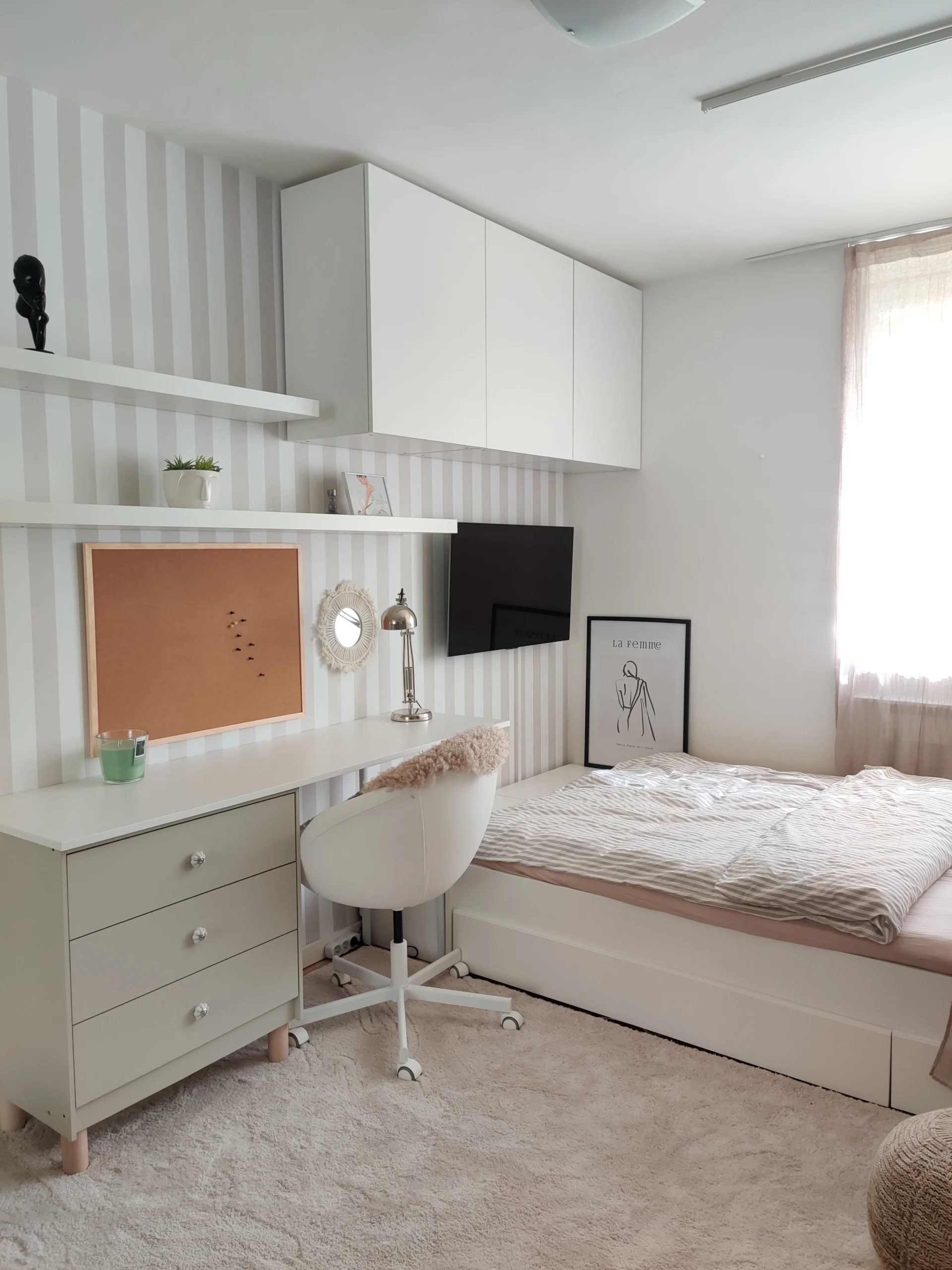 V pokojíčku mladé slečny jsme řešili častý problém – nábytek byl dokupovaný impulzivně a prostor působil jako nábytkový tetris. Bylo potřeba, aby rodina rozhodla, co do pokoje pro mladou slečnu už nepatří, a co naopak necháme a máme pro to vytvořit prostor.