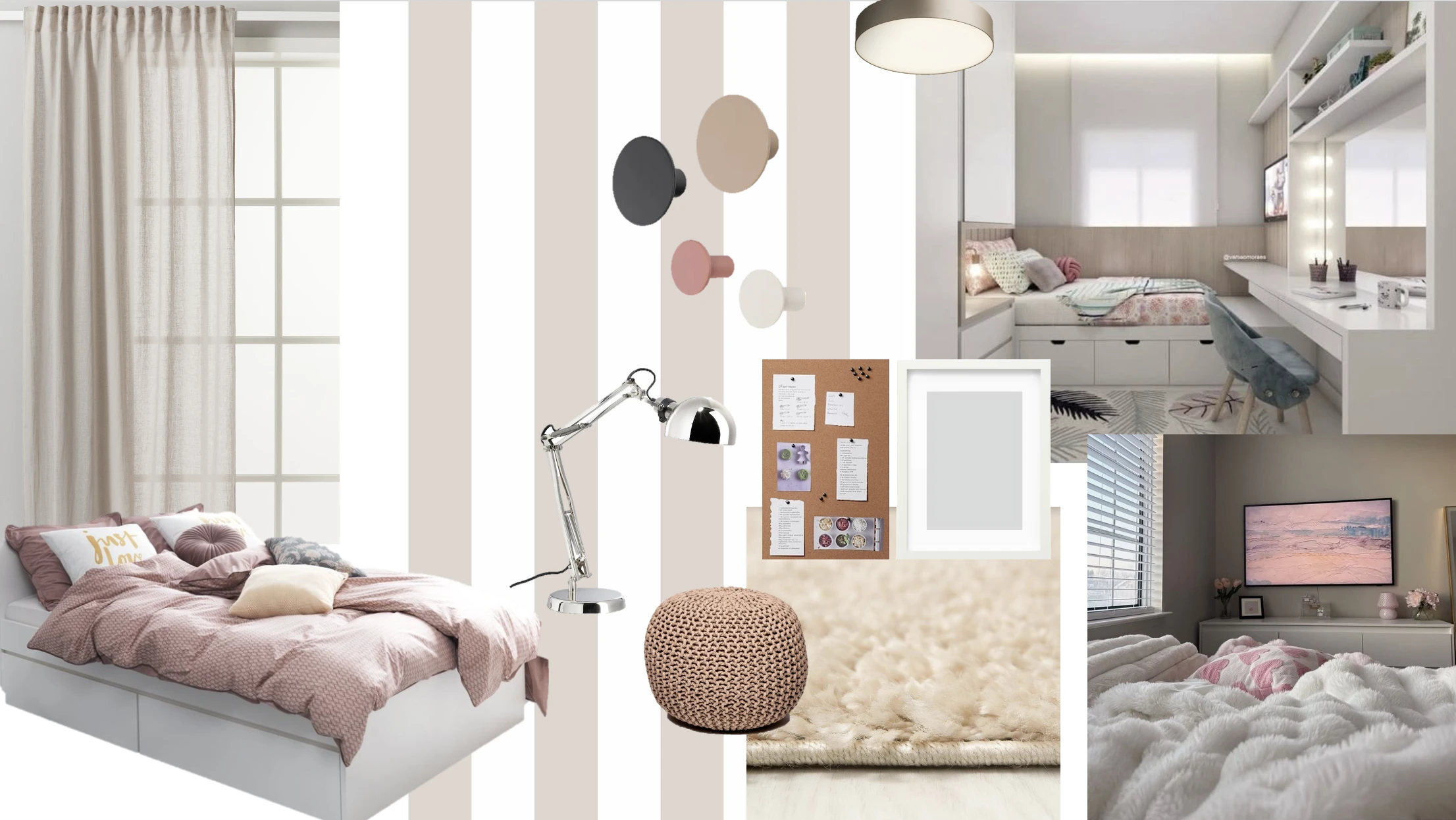 Cílem bylo vytvořit více úložného prostoru, zjemnit pokoj béžovo-bílou paletou a najít místo, kde se může sejít s kamarády a sledovat TV.