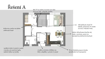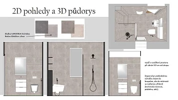 Tato služba zahrnuje varianty půdorysu, pohledy na stěny, 3D vizualizaci pro lepší představu o prostoru, diskuzi nad inspiračními obrázky a moodboard s vytipovanými produkty běžně k dispozici.